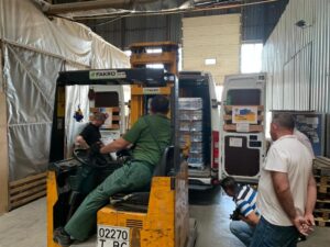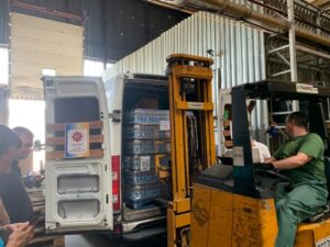 Wśród załadunku znalazły się oświetlacze halogenowe dzięki ofiarności brata Marka z Chorągwi Podwyższenia Krzyża Świętego w Ostrowcu Świętokrzyskim, odzież, zabawki, meble pochodzące od darczyńców, woda i żywność o długim terminie przydatności. Sytuacja jest dramatyczna, potrzeba niemal wszystkiego: żywności, mebli, materacy, odzieży oraz zabawek dla dzieci, aby chociaż na chwilę oderwać ich myśli od wojny.