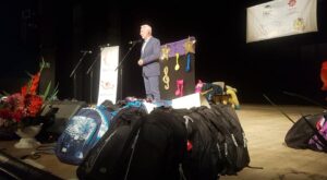 Pół tysiąca plecaków szkolnych z wyposażeniem rozdano dziś w Tarnobrzeskim Domu Kultury. Taki był finał akcji charytatywnej pod nazwą ,, Tornister Pełen Uśmiechów” zorganizowanej przez Caritas Diecezji Sandomierskiej. W wydarzeniu wzięli udział adresaci przedsięwzięcia lub ich przedstawiciele, biskup diecezji sandomierskiej, ksiądz Krzysztof Nitkiewicz, dyrektor sandomierskiej Caritas, ksiądz Bogusław Pitucha, a także prezydent Tarnobrzega, Dariusz Bożek.