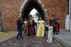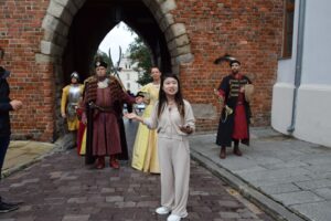 Chińskim gościom spacerującym po starówce towarzyszyli rycerze z Chorągwi Rycerstwa Ziemi Sandomierskiej.