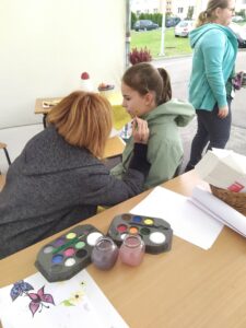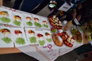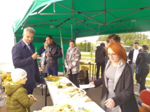 W trakcie trwania pikniku można było również zjeść ciepły posiłek w szkolnej pracowni żywienia, czy też usiąść przy kawiarnianym stoliku i delektować się kawą i ciastkiem, a to za sprawą nauczycieli i uczniów z technikum żywienia i usług gastronomicznych.