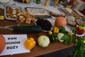 W ramach projektu „Czas na wieś” został ogłoszony konkurs dla Kół Gospodyń Wiejskich pn. „Wariacja smakowa na temat jabłka”. Komisja w składzie: Pani Aneta Ostrowską – Kierownik placówki Terenowej Kasy Rolniczego Ubezpieczenia Społecznego w Staszowie, Pani Anna Adamczyk – zastępca kierownika biura powiatowego Agencji Restrukturyzacji i Modernizacji Rolnictwa w Staszowie, Pani Magdalena Marynowska – prezes Fundacji FARMA oraz Pani Justyna Sojka – nauczyciel przedmiotów zawodowych w ZSCKR w Sichowie Dużym po degustacji pogratulowała kunsztu kulinarnego wszystkim uczestnikom i przyznała następujące wyróżnienia: