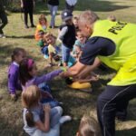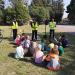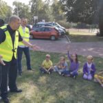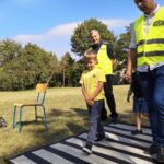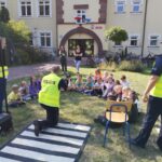 Podczas spotkania dzieci otrzymały odblaski i plany lekcji z informacjami o bezpieczeństwie w ruchu drogowym. Instruowane przez policjanta i pracownika WORD-u, wspólnie z policyjną maskotką „Misiem Rysiem” przechodziły przez przejście dla pieszych.