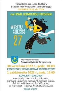 W ostatnich dniach września, w Tarnobrzeskim Domu Kultury odbędzie się Finał 27. Konkursu Piosenki „Wygraj Sukces”. W tym roku do konkursu zgłosiło się blisko tysiąc uczestników z całej Polski. W finale konkursu udział weźmie 111 młodych solistów, wyłonionych w kwalifikacjach wstępnych, które odbyły się w systemie on-line, a następnie w kwalifikacjach regionalnych w 14 ośrodkach kultury w kraju.