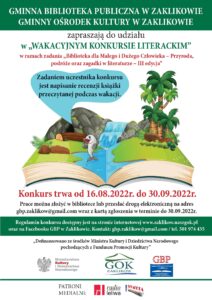 Dlatego podczas tegorocznej edycji w programie nie zabrakło spotkań autorskich ale i warsztatów oraz konkursów. Między innymi już 14 września GOK Zaklików zaprasza na spotkanie z autorem kryminałów Robertem Małeckim. Zaś 20 września odbędą się warsztaty pokoleniowe tworzenia książki ręcznie robionej dla seniorów i dzieci. Zapisy na warsztaty potrwają do 19 września. Natomiast jeszcze tylko do 23 września można dostarczać prace fotograficzne w konkursie 'otaczająca nas przyroda to wielka przygoda’ . Ale na tym nie koniec konkursów bo do końca miesiąca potrwa wakacyjny konkurs literacki na napisanie recenzji książki przeczytanej podczas wakacji. Szczegóły dotyczące wydarzeń w ramach projektu Biblioteka dla Małego i Dużego Człowieka można znaleźć na stronie Gminnego Ośrodka Kultury w Zaklikowie www.zaklikow.naszgok.pl