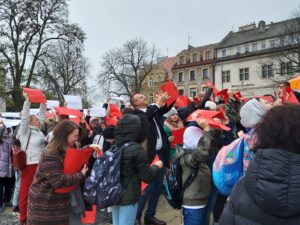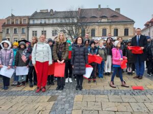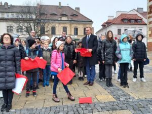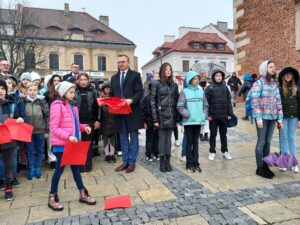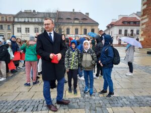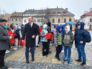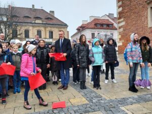 W utworzeniu żywej flagi pomagali dzieciom starosta sandomierski Marcin Piwnik wraz z zastępcą Pawłem Niedźwiedziem oraz burmistrz Sandomierza Marcin Marzec, który wyraził radość z tej inicjatywy: