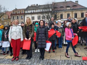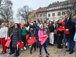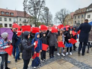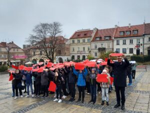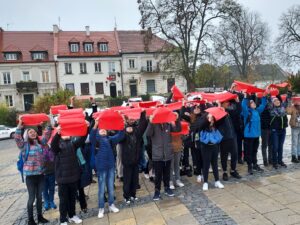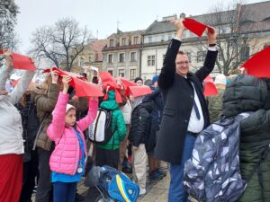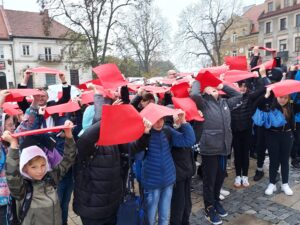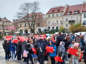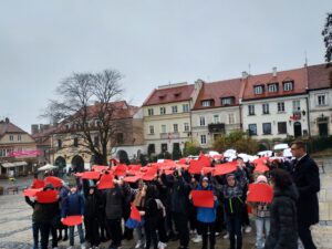 Na sandomierskim rynku powstała wielka żywa biało-czerwona flaga. To jeden z elementów obchodów Narodowego Święta Niepodległości organizowanych przez Miejski Ośrodek Sportu i Rekreacji w Sandomierzu, Sandomierskie Centrum Kultury oraz Urząd Miejski.