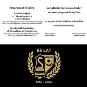 Z okazji 65-lecia Klubu Sportowego „Siarka” Tarnobrzeg, 19 listopada, o godzinie 12.00, w kościele ojców Dominikanów odprawiona zostanie msza święta. O godzinie 14.00, na Stadionie Miejskim przy Alei Niepodległości rozpocznie się mecz wspomnień z udziałem byłych zawodników Siarki. Część oficjalną 65-lecia zaplanowano na godzinę 16.00 w Tarnobrzeskim Domu Kultury.