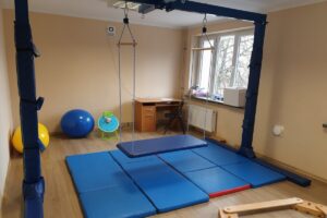 Gabinet został wyposażony w niezbędny sprzęt taki jak: huśtawka, materace, równoważnia czy gumowe piłki. Wszystko po to, aby poddające się w nim zabawie dzieci były odpowiednio stymulowane.