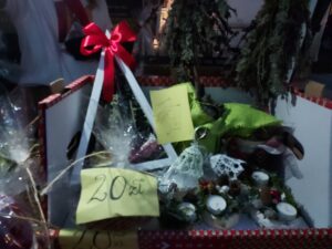 W czasie kiermaszu nie zabrakło akcentów charytatywnych w postaci dwóch stoisk ze świątecznymi ozdobami i stroikami.