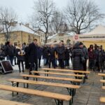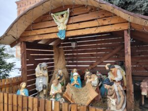 Spotkanie odbyło się koło szopki umiejscowionej opodal ratusza: