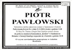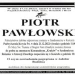 Piotr Pawłowski zmarł 17 grudnia w sobotę w wieku 66 lat.