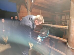 W szopce można oglądać różne zwierzęta pochodzące z gospodarstwa przy schronisku: