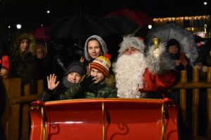 Świątecznie zrobiło się na odnowionym Rozwadowskim Rynku w Stalowej Woli. A to za sprawą choinki i świątecznych iluminacji które rozświetliły centrum tej dzielnicy miasta. Ten moment we wtorek po 16.00 uświetnił też swoją wizytą Mikołaj w saniach z prawdziwymi reniferami. Były też prezenty i słodki poczęstunek. Mimo deszczu i zimna nie zabrakło chętnych do odwiedzenia rozwadowskiego rynku. Jedni przyszli głownie dla Mikołaja, jak Oliwia z koleżanką: