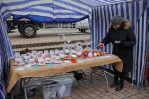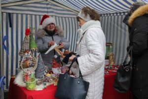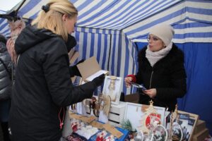 Ze sceny brzmiała świąteczna muzyka. Równocześnie odbywała się charytatywna licytacja stroików świątecznych.