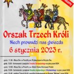 Około godziny 13:40 planowany jest pokłon Trzech Króli a także wspólne kolędowanie ze scholą Miriam na placu przed Samorządowym Ośrodkiem Kultury.