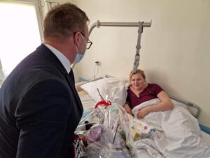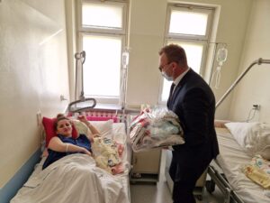 Wyprawkę dla swojej nowej mieszkanki przywiózł także wójt gminy Dwikozy Marek Łukaszek: