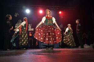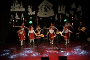 Dzieci i młodzież w kolorowych strojach ludowych zaprezentowały pokaz tańców polskich i suity tańców regionalnych. Na scenie wybrzmiały także najpiękniejsze polskie kolędy.
