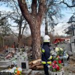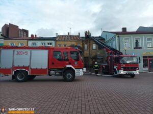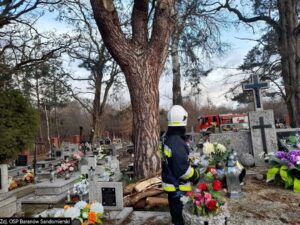 Pracy strażakom przysporzył także wczorajszy wiatr. Strażacy Ochotnicy z Baranowa Sandomierskiego usuwali złamany konar drzewa zwisający nad chodnikiem i pomnikami tamtejszego cmentarza. Natomiast jednostka OSP Sobów, w asyście autodrabiny z Tarnobrzeskiej Jednostki Ratowniczo-Gaśniczej, działały Na placu Bartosza Głowackiego gdzie doszło do zerwania poszycia dachowego na jednej z kamienic.