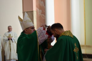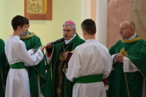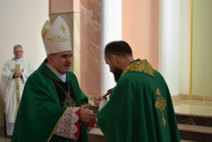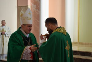Po homilii, odmawiając specjalną modlitwę, bp Krzysztof Nitkiewicz wręczył ks. Szawanowi krzyż misyjny jako znak ewangelicznego posłania.