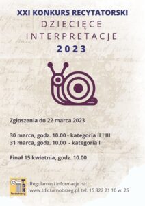 Rusza kolejna, 21. Edycja Konkursu Recytatorskiego „Dziecięce Interpretacje”. Organizatorem przedsięwzięcia jest Tarnobrzeski Dom Kultury.