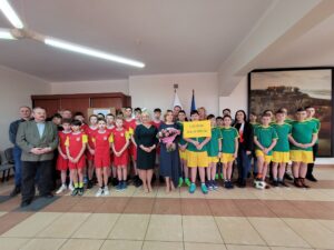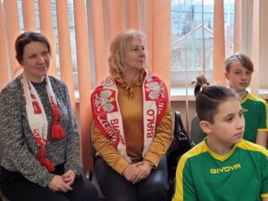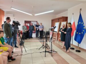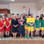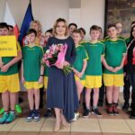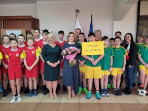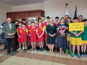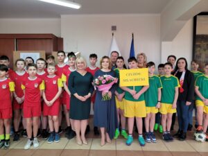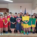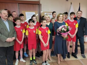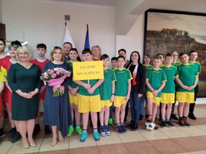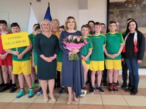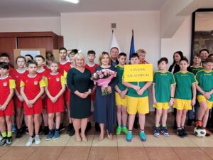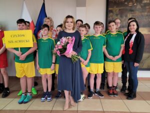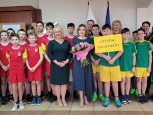 W spotkaniu z minister Anną Krupką wzięli udział uczniowie ze szkół podstawowych w Zawichoście i Czyżowie Szlacheckim, którzy cieszą się z nowego stadionu: