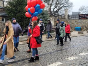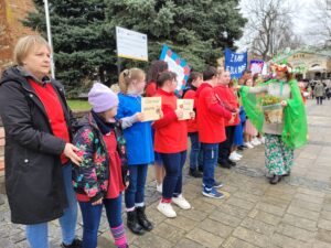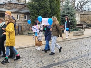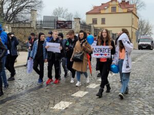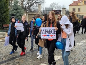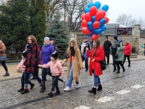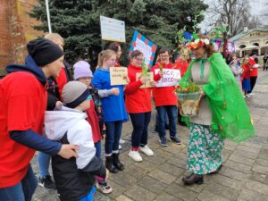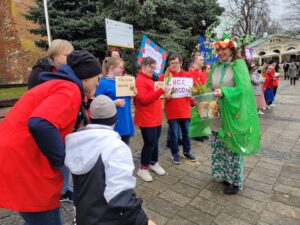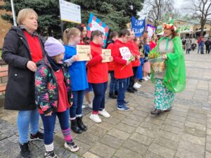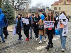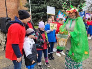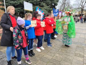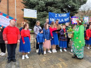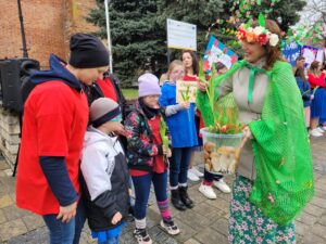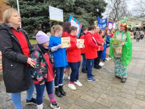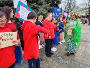 Było też symboliczne wypuszczenie balonów 'Ziemia i niebo dla wszystkich’ a Pani Wiosna wręczyła kolorowe tulipany wszystkim uczniom z zespołem Downa w dniu ich święta.
