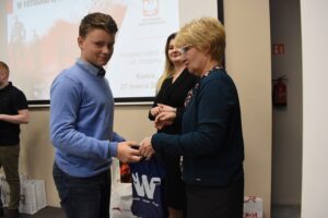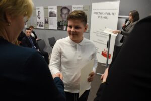 Młodzież została nagrodzona dyplomami, grami planszowymi czy sprzętem elektronicznym. Specjalne podziękowania trafiły też do nauczycieli, którzy wspierają rozwój swoich podopiecznych i zachęcają do uczestnictwa w tego typu inicjatywach. Zanim odbyło się wręczenie dyplomów i nagród, Łukasz Pastuszyński z Oddziału Okręgowego Narodowego Banku Polskiego w Kielcach zaprezentował monetę kolekcjonerską z serii „Wyklęci przez komunistów żołnierze niezłomni” – Józef Kuraś „Ogień”. Srebrne monety o nominale 10 zł trafiły również do puli nagród dla laureatów.