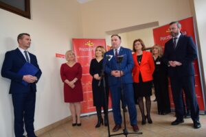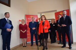 W symbolicznym przecięciu wstęgi wzięli udział świętokrzyscy parlamentarzyści: wiceminister sportu Anna Krupka, poseł Agata Wojtyszek, poseł Marek Kwitek oraz członek zarządu i przedstawiciele Poczty Polskiej.
