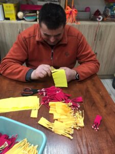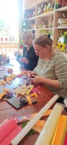 Przygotowanie wielkanocnych dekoracji zaczyna się zaraz po Bożym Narodzeniu, gdyż przygotowanie wielu drobnych elementów jest bardzo czasochłonne. Stroiki trafiają do instytucji i osób zaprzyjaźnionych z placówką.
