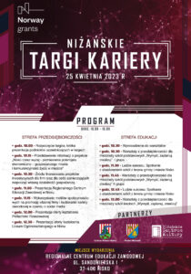 Niżańskie targi kariery mają być też okazją do promocji lokalnego sektora przedsiębiorczości, ale też możliwością nawiązania współpracy pomiędzy szkołami a przedsiębiorcami. Dla młodzież szkół podstawowych będzie to też okazja do zapoznania się z ofertą szkół średnich z terenu powiatu niżańskiego. A uczniowie szkół ponadpodstawowych będą mogli zapoznać się z propozycją politechniki. Targi Kariery w3 Nisku będą też otwarte dla mieszkańców, absolwentów, osób chcących zmienić pracę i osób bezrobotnych, które poszukują pracy. Niżańskie Targi Kariery realizowane są w ramach projektu „Nisko Coraz Wyżej – Podniesienie Potencjału Ekonomiczno – Gospodarczego miasta i konkurencyjności życia w mieście”, dofinansowanego z funduszy norweskich.