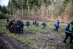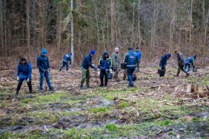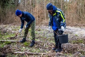 Wolontariusze Enei Połaniec, wspierani byli przez leśników z Nadleśnictwa Staszów. Akcję przeprowadzono na terenie ok. 1 ha w leśnictwie Szczeka.