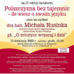 Michał Rusinek był również sekretarzem laureatki Nagrody Nobla Wisławy Szymborskiej. Natomiast zapisy chętnych do udziału w konkursie POLSZCZYZNA BEZ TAJEMNIC potrwają do tego czwartku: