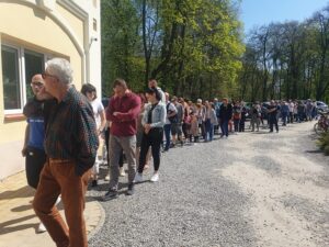 Po budki przyszły osoby w różnym wieku. Niektórzy zawieszą je w sadzie, inni na balkonie, a jeszcze inni na działce.