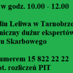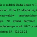 18 kwietnia (wtorek) w redakcji Radia Leliwa w Tarnobrzegu w godzinach od 10.00 do 12.00 odbędzie się telefoniczny dyżur pracowników tarnobrzeskiego Urzędu Skarbowego.