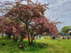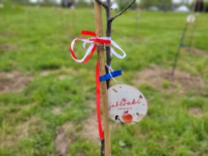 Białe i czerwone kwitnące jabłonie utworzą wielką, żywą, biało – czerwoną flagę: