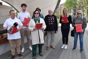 Flagi i Konstytucje rozdawali dzisiaj w Stalowej Woli radni miejscy Renata Butryn i Dariusz Przytuła ze Stalowowolskiego Porozumienia Samorządowego. Happening wspólnie ze studentami prawa i aktywistami z Rebeliantów Podkarpackich z organizowali na centralnym placu zabaw. Radna Renata Butryn podkreślała, że Święto Flagi buduje poczucie wspólnoty: