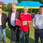 Przedstawiciele Podkarpackiego Związku Piłki Nożnej wręczyli odznaki związku. Diamentową przypinką wyróżniono między innymi wieloletniego prezesa klubu z Wielowsi Jana Kańkę.