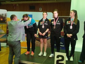 Trenerka AZS UJD Bebetto Częstochowa Joanna Paulina Narkiewicz cieszy się ze srebrnego medalu swoich tenisistek.