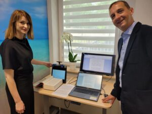 Grażyna Winiarska z sandomierskiego koła Polskiego Związku Niewidomych jest zachwycona technicznymi rozwiązaniami dla osób słabowidzących: