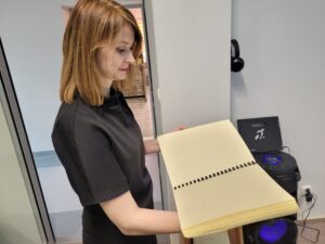 Nowa czytelnia sensoryczna zrobiła duże wrażenie na członkach sandomierskiego koła Polskiego Związku Niewidomych.