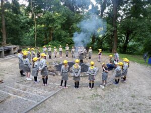 Został zamówiony totem, czapeczki oraz chusty harcerskie z logo grupy a w programie wieczornego uroczystego spotkania znalazło się wywieszenie totemu. złożenie obietnicy, otrzymanie odznaki zucha, wpis do księgi pamiątkowej oraz zajęcia praktyczne. Był więc pokaz rozkładania namiotu , ćwiczenia w grupach, zdobywanie umiejętności, zbieranie chrustu, bezpieczne rozpalanie ogniska, pląsy oraz wspólne śpiewanie piosenek przy ognisku.