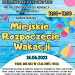 Już w tę sobotę w Stalowej Woli odbędzie się Miejskie Rozpoczęcie Wakacji. Impreza odbędzie się w Parku Miejskim w Stalowej Woli przy Wodnym Placu Zabaw. Impreza która potrwa od godziny 14.00 do godziny 18.00 będzie obfitowała w liczne atrakcje. Nie zabraknie między innymi wypuszczenia kolorowych balonów do nieba, warsztatów kulinarnych dla dzieci, ale też aktywności ruchowej dla dzieci za sprawą dance fitness, czy fitness boxing,. Bedą też Teatr Jednej Miny, tor przeszkód, dmuchańce oraz miasteczko „Bezpieczne Wakacje” przygotowane przez straż i policję. O dobrą zabawę dla dzieci i młodzieży zadbają też Miejski Dom Kultury oraz Miejska Biblioteka Publiczna.