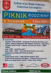 Przewidziano również stoiska z jedzeniem i napojami. Organizatorami wydarzenia są sołtys oraz Rada Sołecka Sołectwa Szczeglice. Początek o godzinie 14.30.