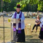 W intencji pomordowanych przez ukraińskich nacjonalistów modlono się podczas krótkiego nabożeństwa, które odprawił ksiądz Andrzej Barzycki. – Stajemy w zadumie, refleksji nad tragedią naszego narodu. Wspominamy ofiary rzezi wołyńskiej, niewinnych osób, które oddały życie za ojczyznę – mówił duchowny.