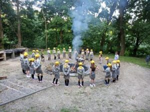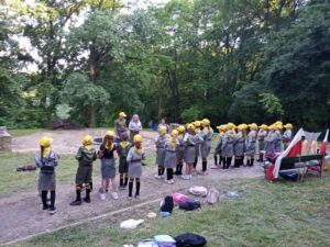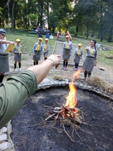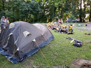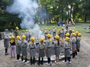 Był pokaz rozkładania namiotu, ćwiczenia w grupach, zdobywanie umiejętności, zbieranie chrustu, pląsy oraz wspólne śpiewanie piosenek przy ognisku.