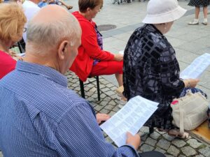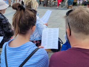 'Wolne Śpiewanie’ to tradycyjne już wydarzenie organizowane przez Annę i Jacka Przybyszów z chóru zamkowego SAN-do-MIR. Spotkanie prowadziła Anna Przybysz, inicjatorka wspólnego śpiewania patriotycznych pieśni: