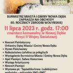 W Nowej Dębie natomiast uroczystości odbędą o godzinie 17 się na cmentarzu komunalnym, przy Krzyżu II Wojny Światowej. W programie wydarzenia zaplanowano między innymi koncert patriotyczny Orkeistry Dętej Miasta i Gminy Nowa Dęba, nabożeństwo żałobne za poległych, apel pamięci i salwę honorowa. Z kolei w Samorządowym Ośrodku Kultury przy ulicy Żeromskiego 2 oglądać można wystawę 'Sąsiedzka krew. Ludobójstwo wołyńsko – galicyjskie 1943 – 1945′.