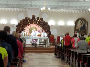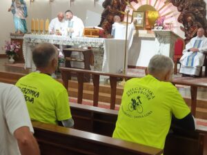 W trakcie mszy świętej poświęcone zostały różańce, które trafiły potem do osób, które po raz pierwszy zdecydowały się na uczestnictwo w Pielgrzymce Rowerowej Tarnobrzeg – Jasna Góra.