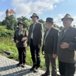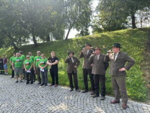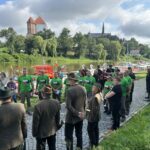 Wypływających w spływ do stolicy żegnały myśliwskie sygnały w wykonaniu Zespołu Sygnalistów Myśliwskich 'Raróg” przy Okręgowej Radzie Łowieckiej w Tarnobrzegu: