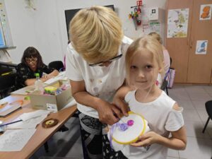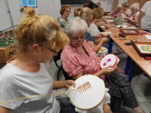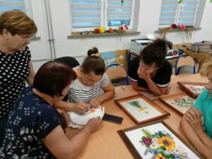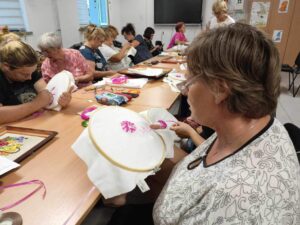 – Cykliczne warsztaty z instruktorem rękodzieła dotyczące haftu wstążkowego.